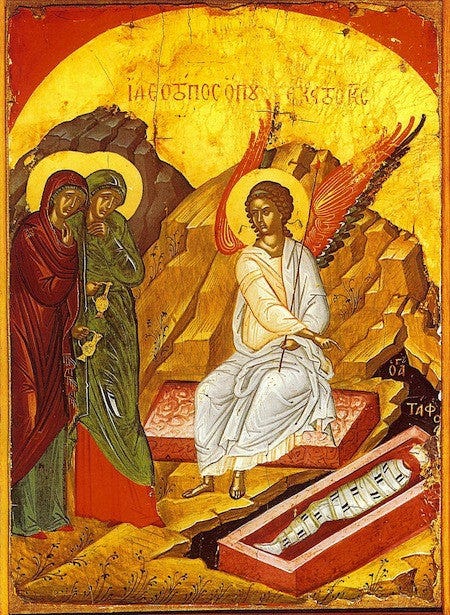 This dramatic prelude is leading up to the anticipated announcement, the cathartic statement that defines the Christian faith, “Christ is Risen!”, but in doing so, the priest first reads from the Gospel of Mark: